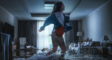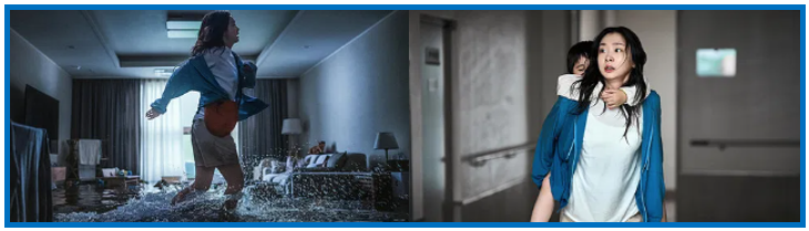 안나는 아들을 업고 물이 가득 찬 아파트 계단과 복도를 지나 옥상으로 향합니다. 그 과정에서 죽을 고비를 몇번이나 넘기죠.