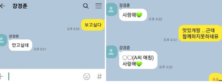 강경준과 A 씨의 카톡 메시지 내용이 공개되며