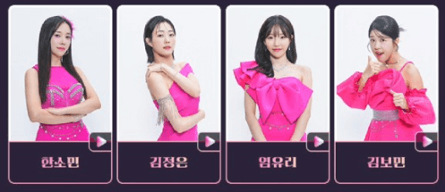 미스김, 민정윤, 박민주, 박지윤, 방서희, 배아현, 복지은, 빈예서,