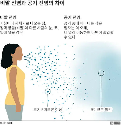 기침 및 재채기 등에 의한 호흡기 전파에 의해 이루어집니다.