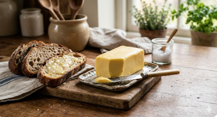 - 천연버터(가공버터 지양): 유지방 함량이 80% 이상인 제품을 선택해야 합니다. 식물성 유지가 혼합된 가공버터나 마가린은 트랜스지방 위험이 있습니다.
