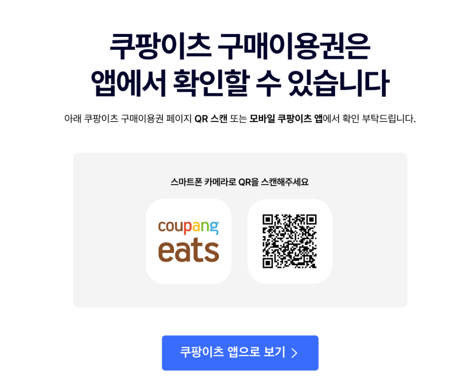 저 QR코드를 스캔하면 바로 쿠팡이츠로 쿠폰이 다운됩니다.
