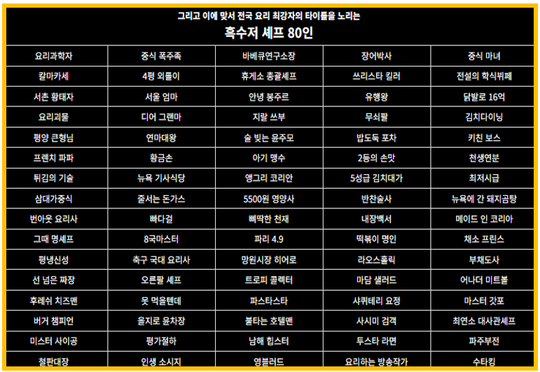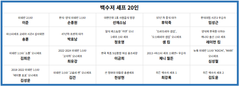 - 백수저(스타 셰프) 주요 라인업