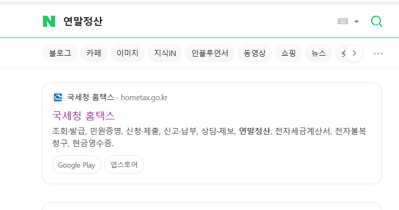 아래와 같이 검색창에 연말정산을 치면 국세청 홈택스가 뜹니다.